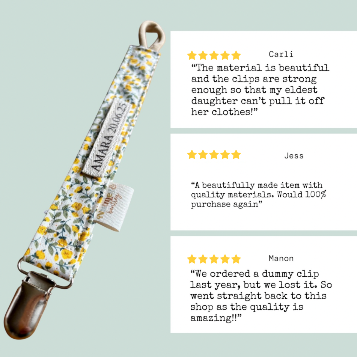 🧡Cotton fabric with a metal clasp designed to keep dummies clean and safe from being dropped or lost.