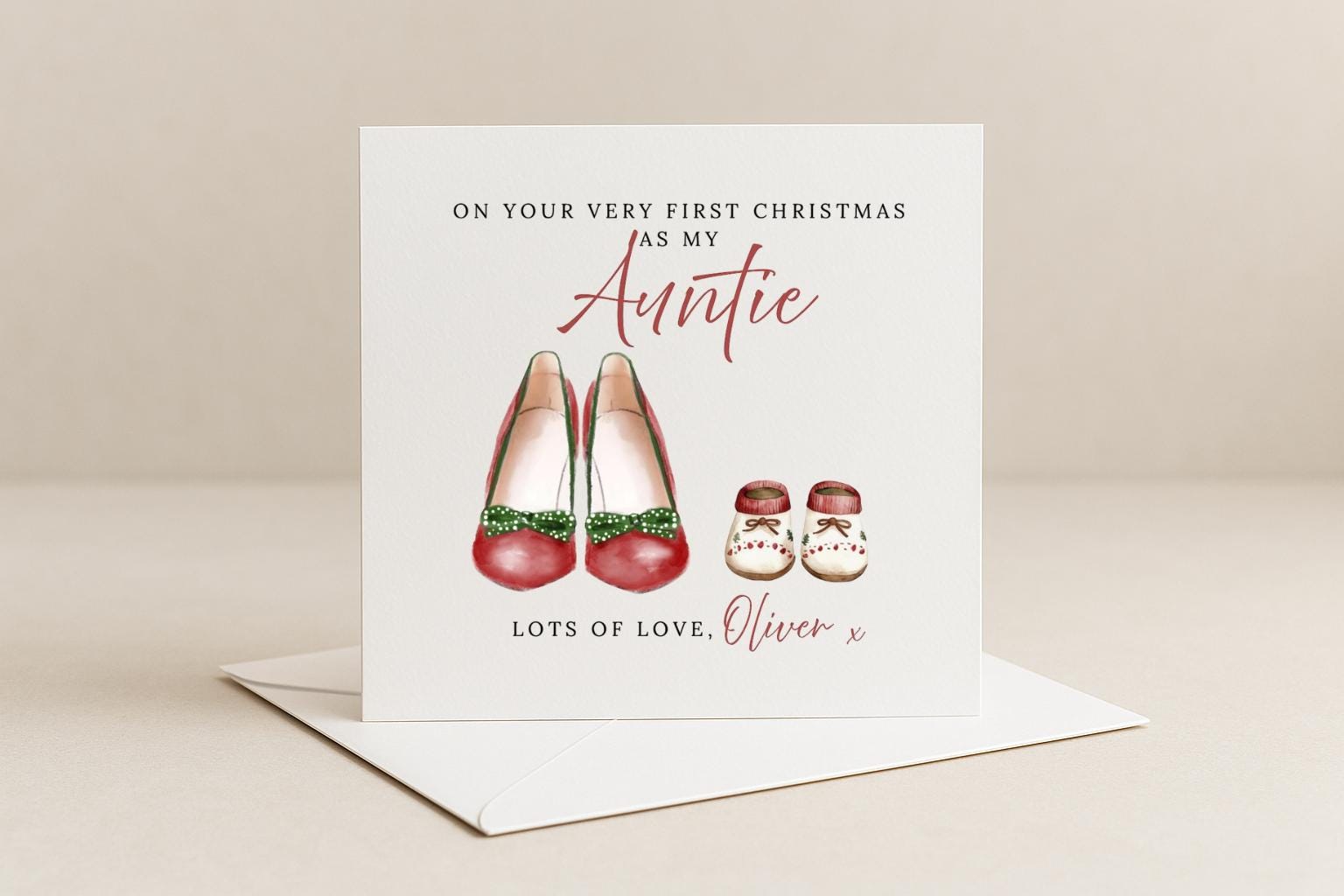 This card is perfect for a first Christmas as Mummy, Grandma, Auntie, Great Grandmother – or you can even choose your own name or title to make it completely personal.