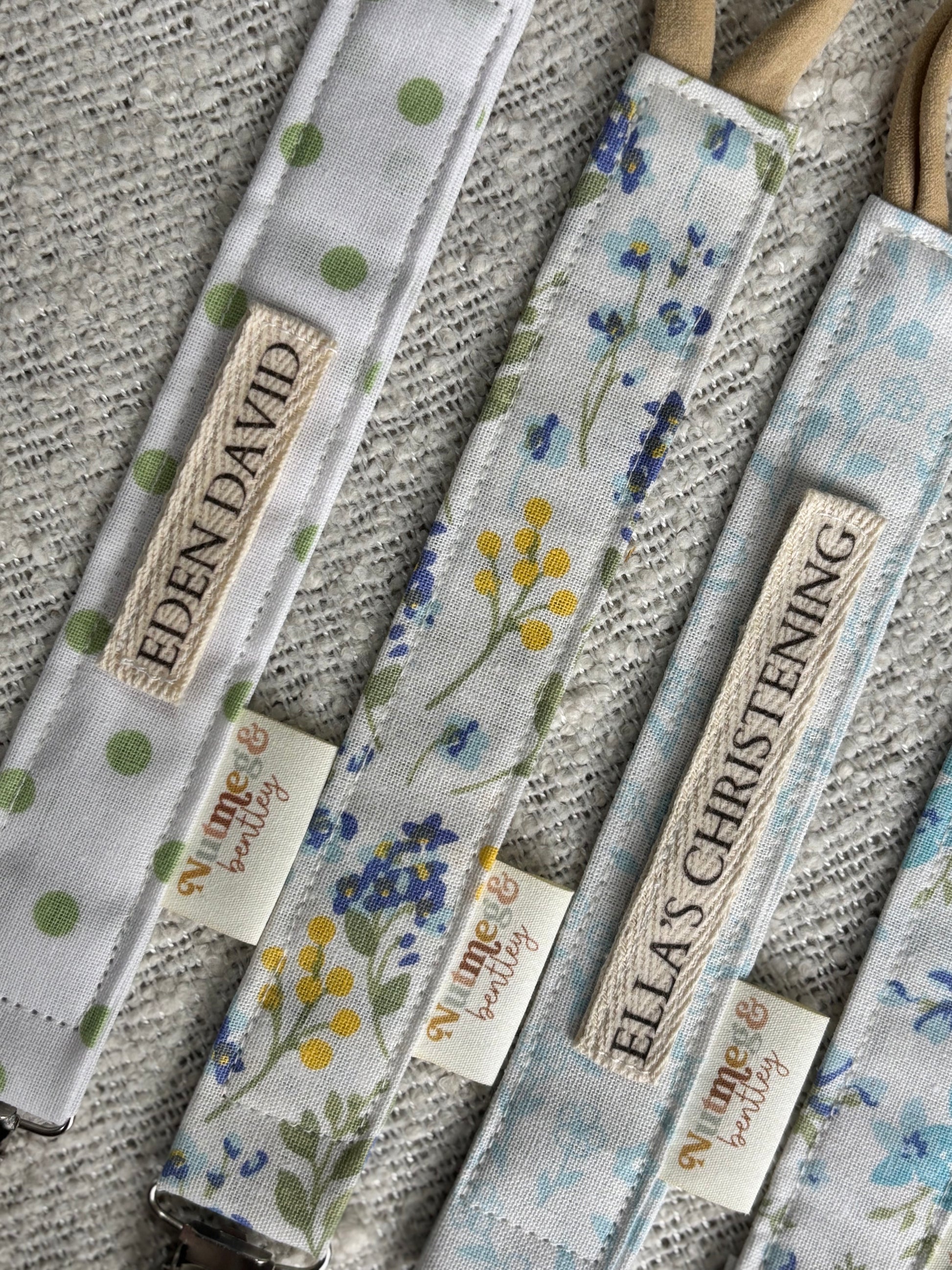 Made in the UK using soft, high-quality fabrics and finished with your baby’s name, each clip is both a practical everyday essential and a timeless keepsake to treasure.