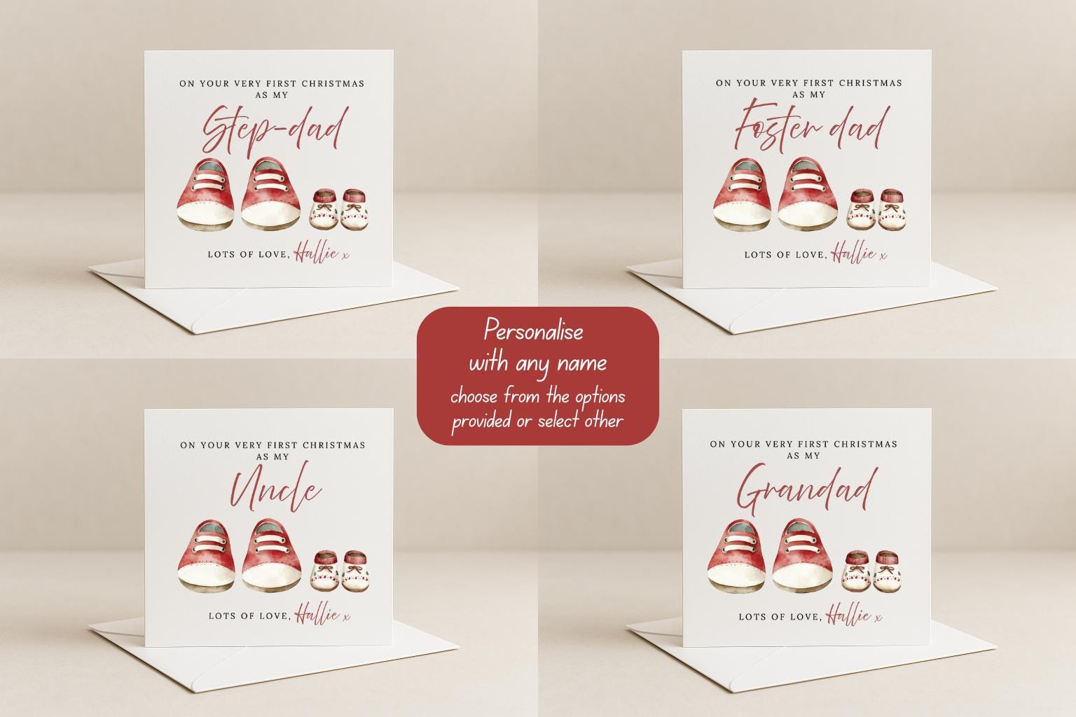 This card is perfect for a first Christmas as Daddy, Grandad, Step Dad, Foster Dad, or Uncle – or you can even choose your own name or title to make it completely personal.