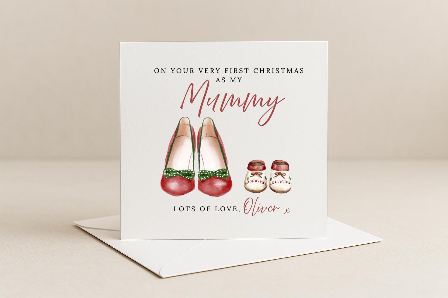 This card is perfect for a first Christmas as Mummy, Grandma, Auntie, Great Grandmother – or you can even choose your own name or title to make it completely personal.